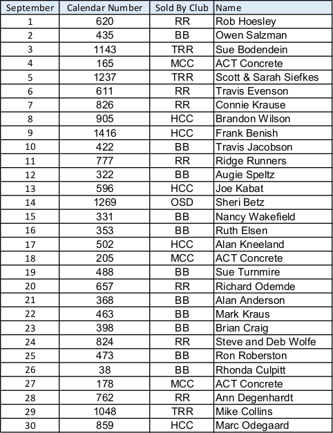 September 2025 Calendar Raffle Winners